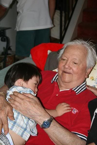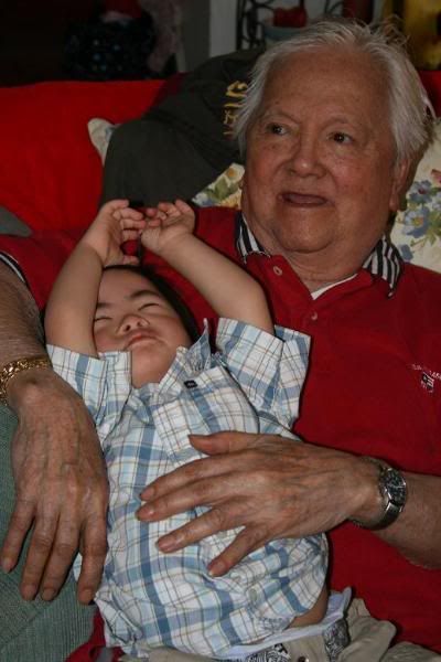 was awesome. not everyone was there but it was great to have everyone together for easter. the kids and i went to church and will came along as well. we ended our sunday morning well, so i hope things only progress from there. my lolo was having his usual mood swings, you know asking where the father of my kids are and whatnot. he has alzheimers and still thinks im 11 years old on his bad days. i also noticed that he was holding a picture frame with my lolas picture in it. she passed away in 2002. it made me wonder if i was going to be like that, you know...hole my husbands picture. i miss her. well, moving along...an hour or two later, he was all smiles. he was smiling at caleb and laughing with him. for the first time he held his great grandson. he loves him and was singing to him too! i took so many pictures <3